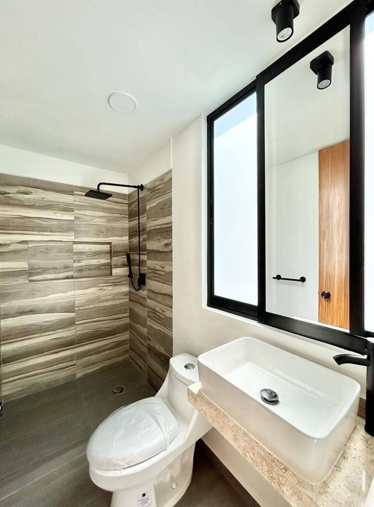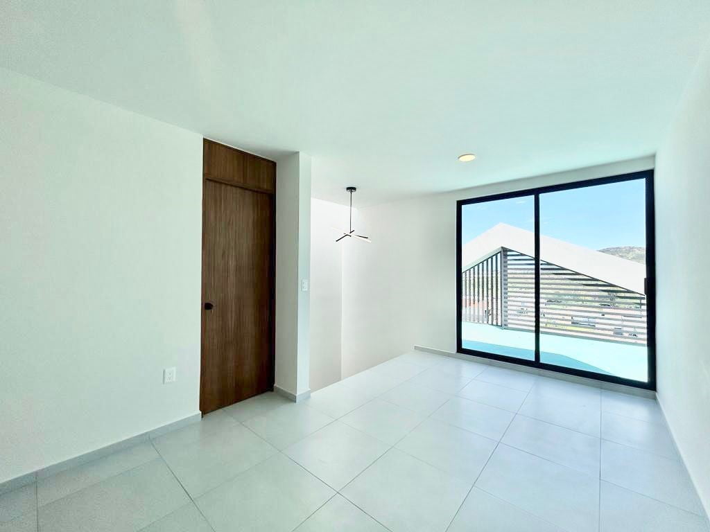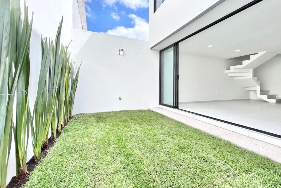 4 Recámaras con closets corredizos, 4 1/2 Baños, Espacio sala-comedor, Cocina integral con acabados de granito parrilla y horno, Patio Trasero con pasto, Área de Lavado, Roof Garden, Cajón de estacionamiento y Bodega.