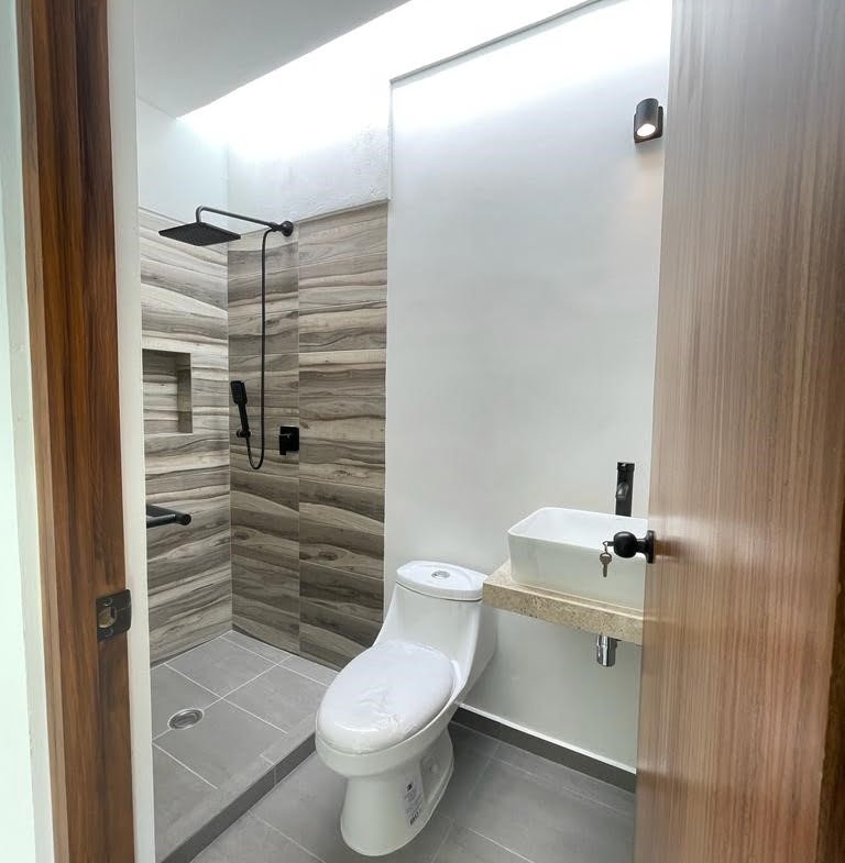 Tiene preparación para mini splid, en toda la casa tiene luces de empotre, azulejo en baños y accesorios en baños.