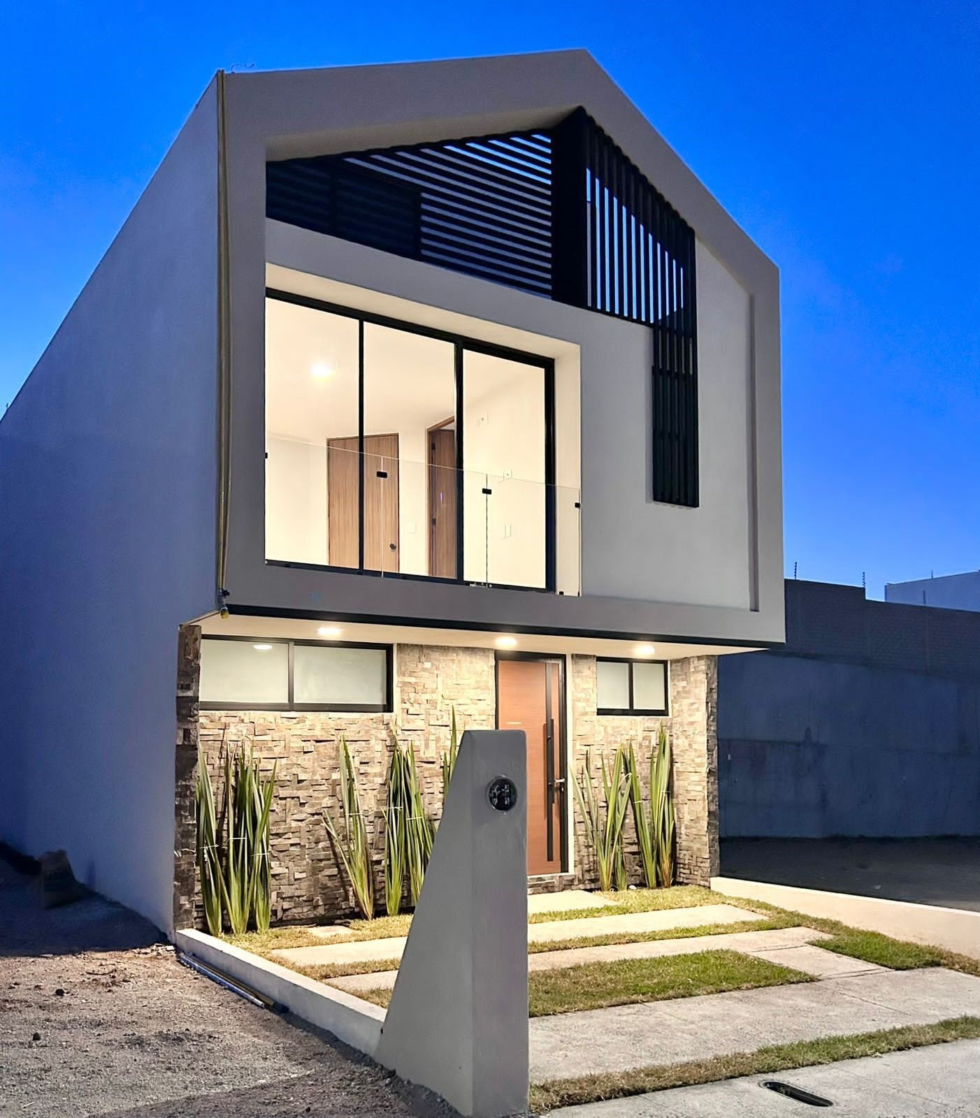 La casa ésta hecha con block, castillo de varilla 3/8, castillos de varilla 1/2, losa de concreto armado en área de Roof Garden, losas de casetón con nervaduras de varillas en losas entrepiso y cisterna de 2,500 litros.