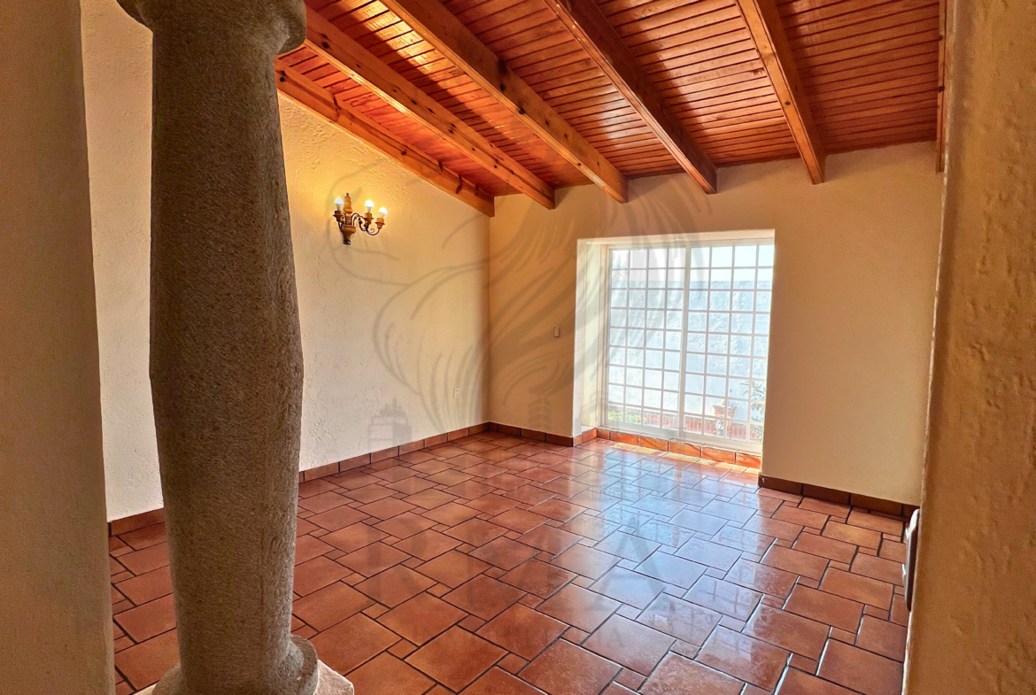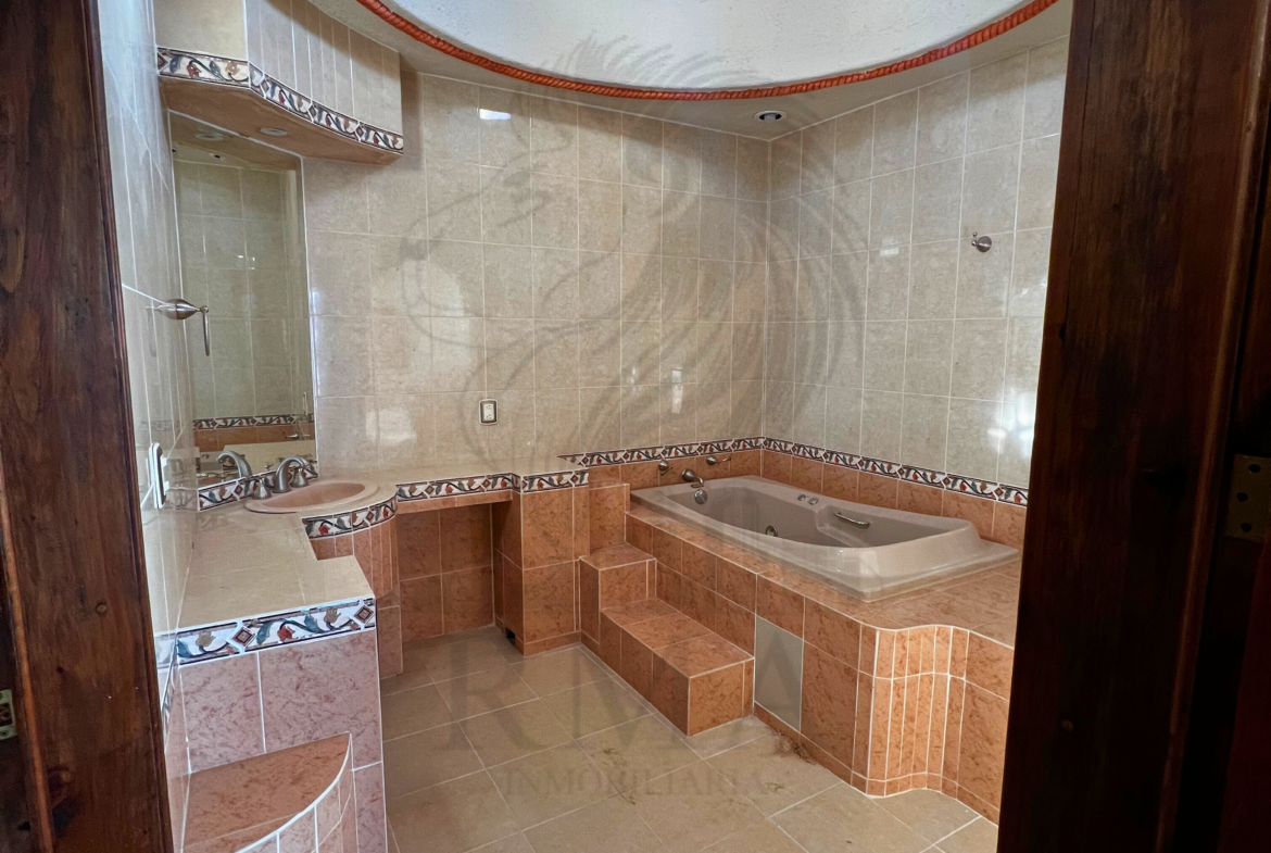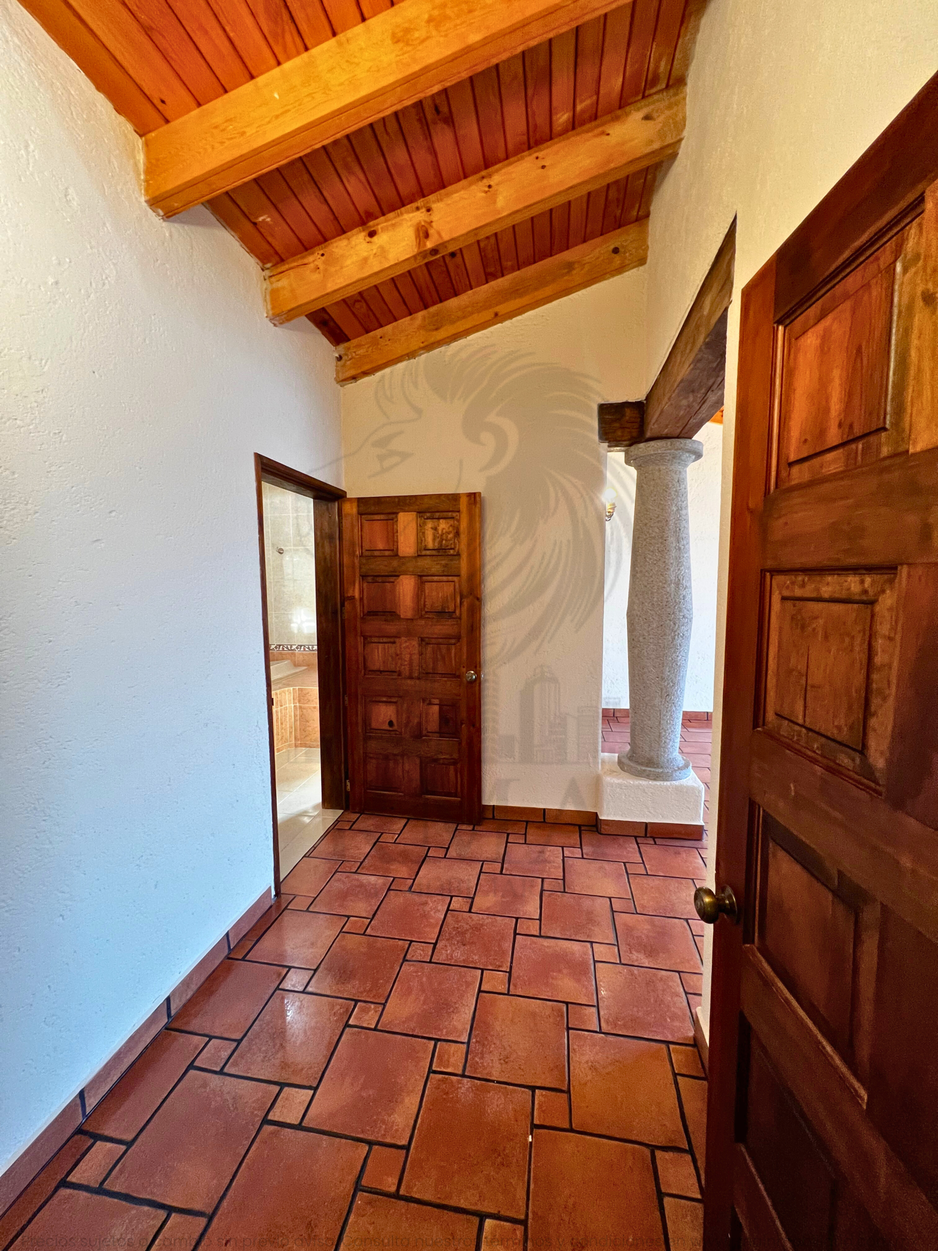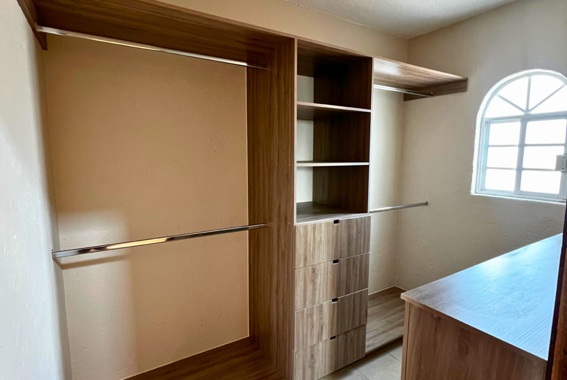 La planta alta ofrece una pequeña sala de TV, espacio para estudio u oficina, recámara secundaria con clóset y baño completo, y una recámara principal con vestidor y baño completo con tina y regadera.