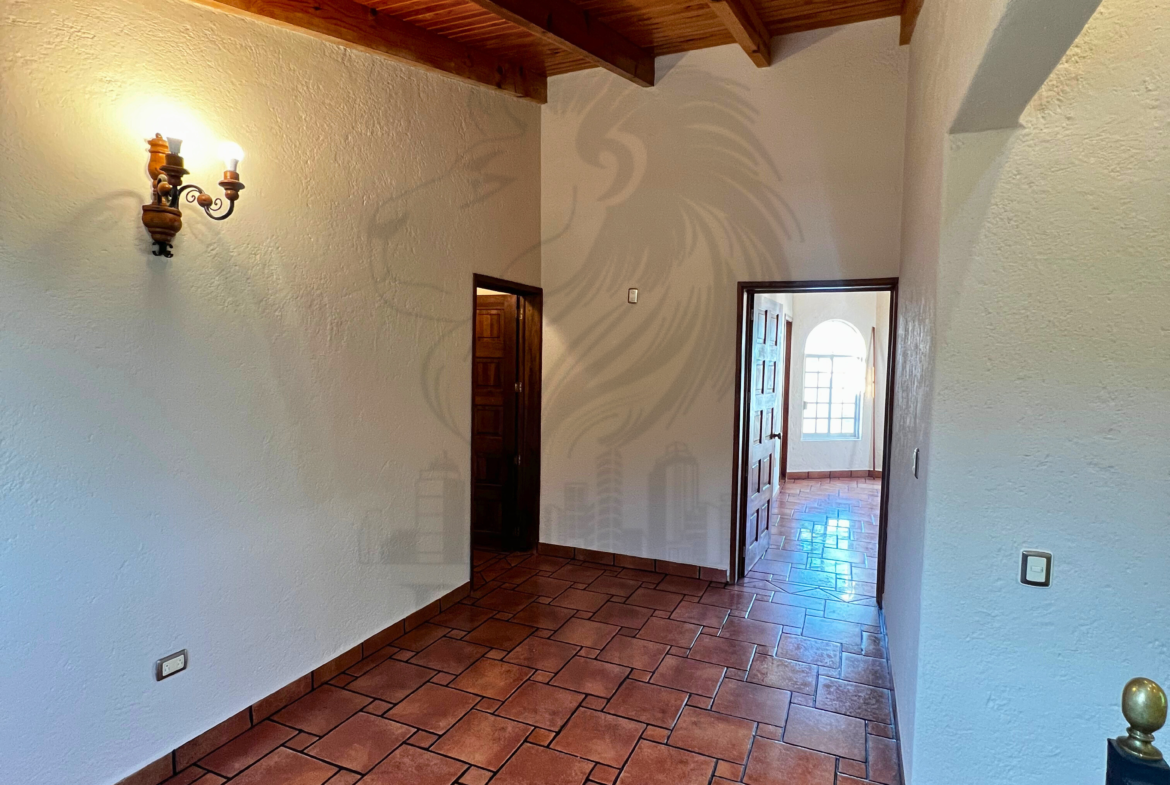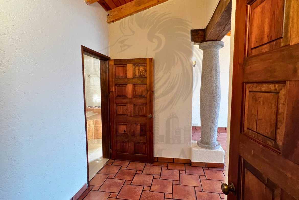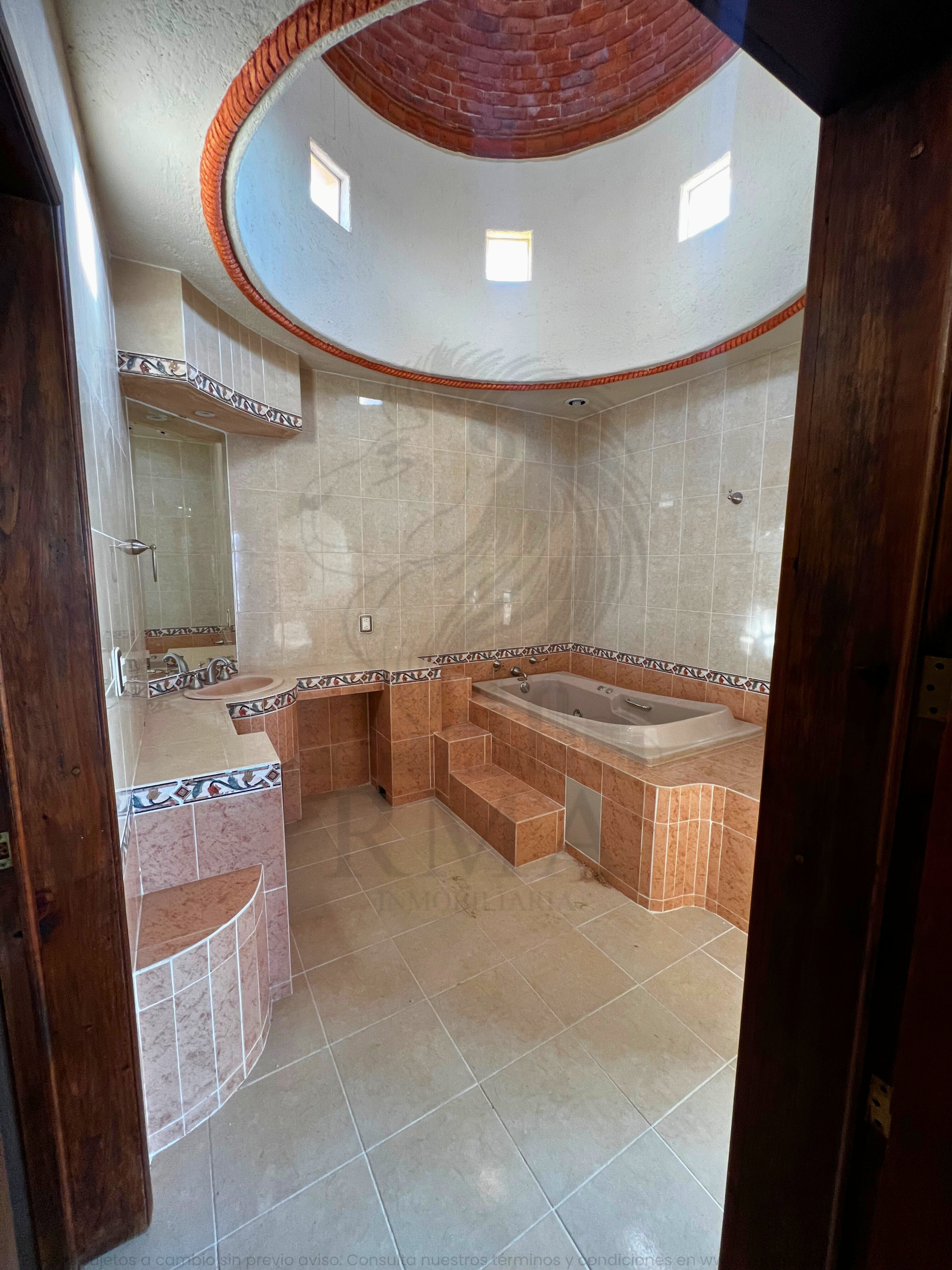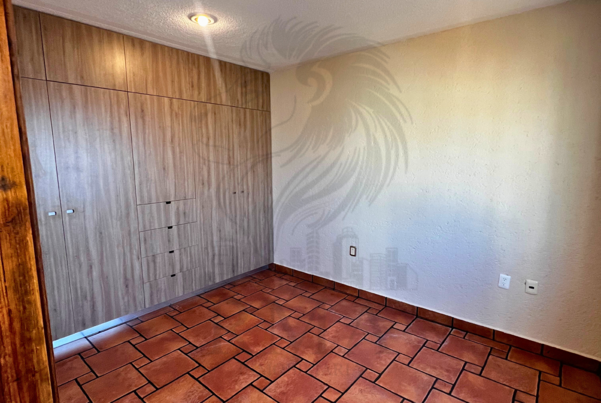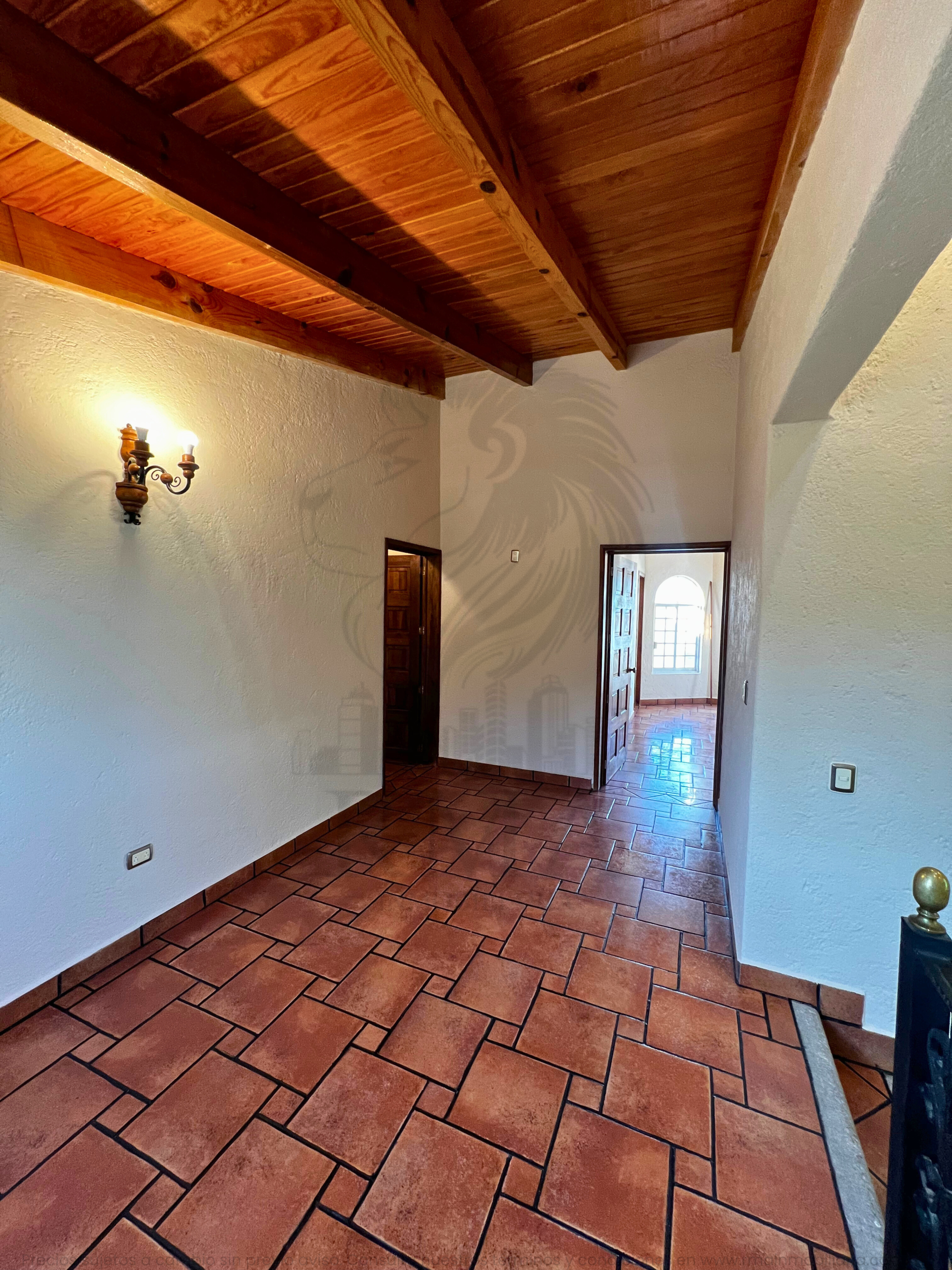La planta alta ofrece una pequeña sala de TV, espacio para estudio u oficina, recámara secundaria con clóset y baño completo, y una recámara principal con vestidor y baño completo con tina y regadera.
