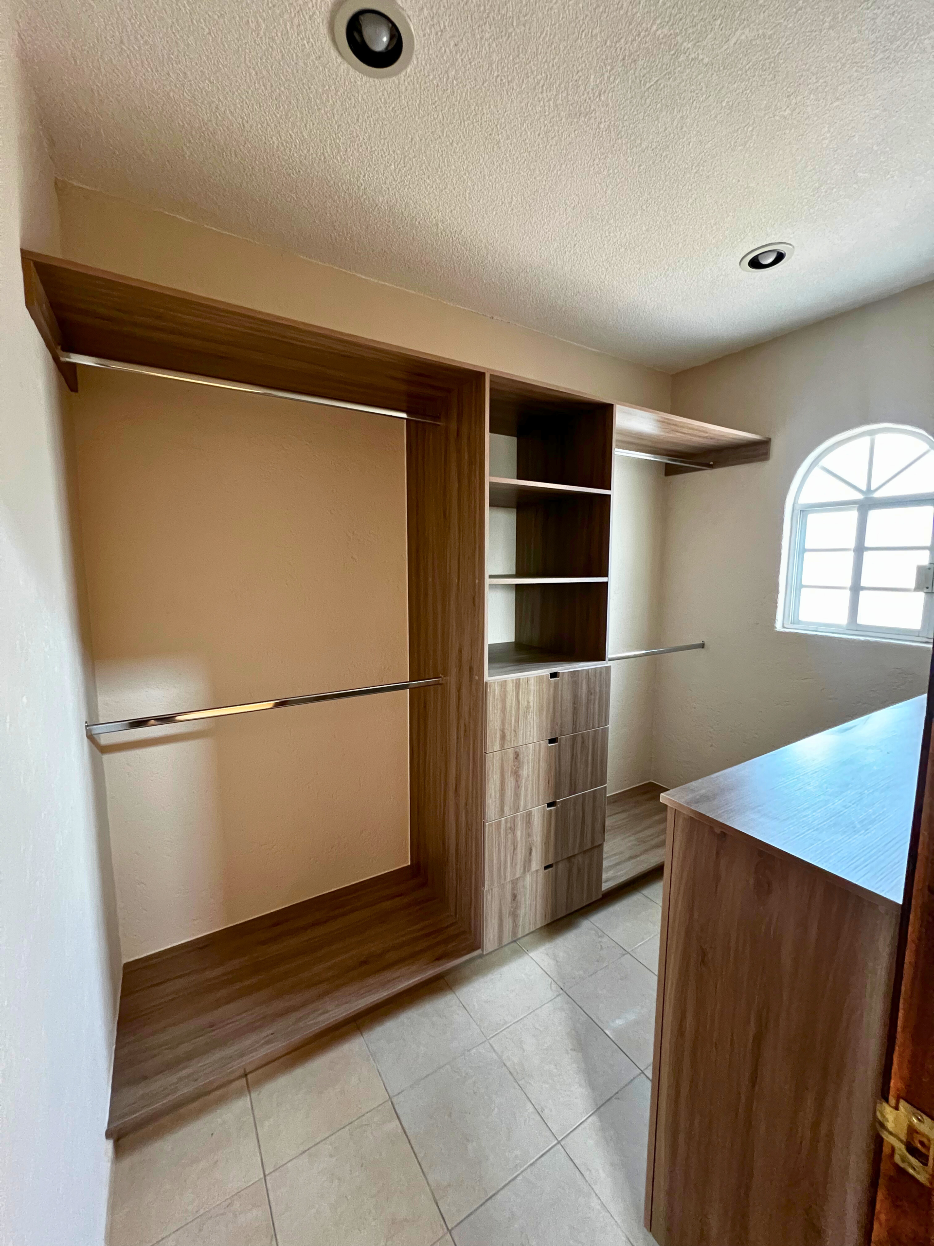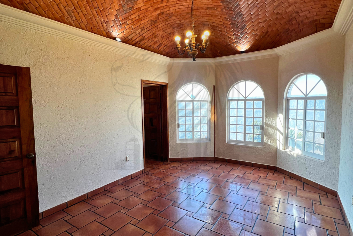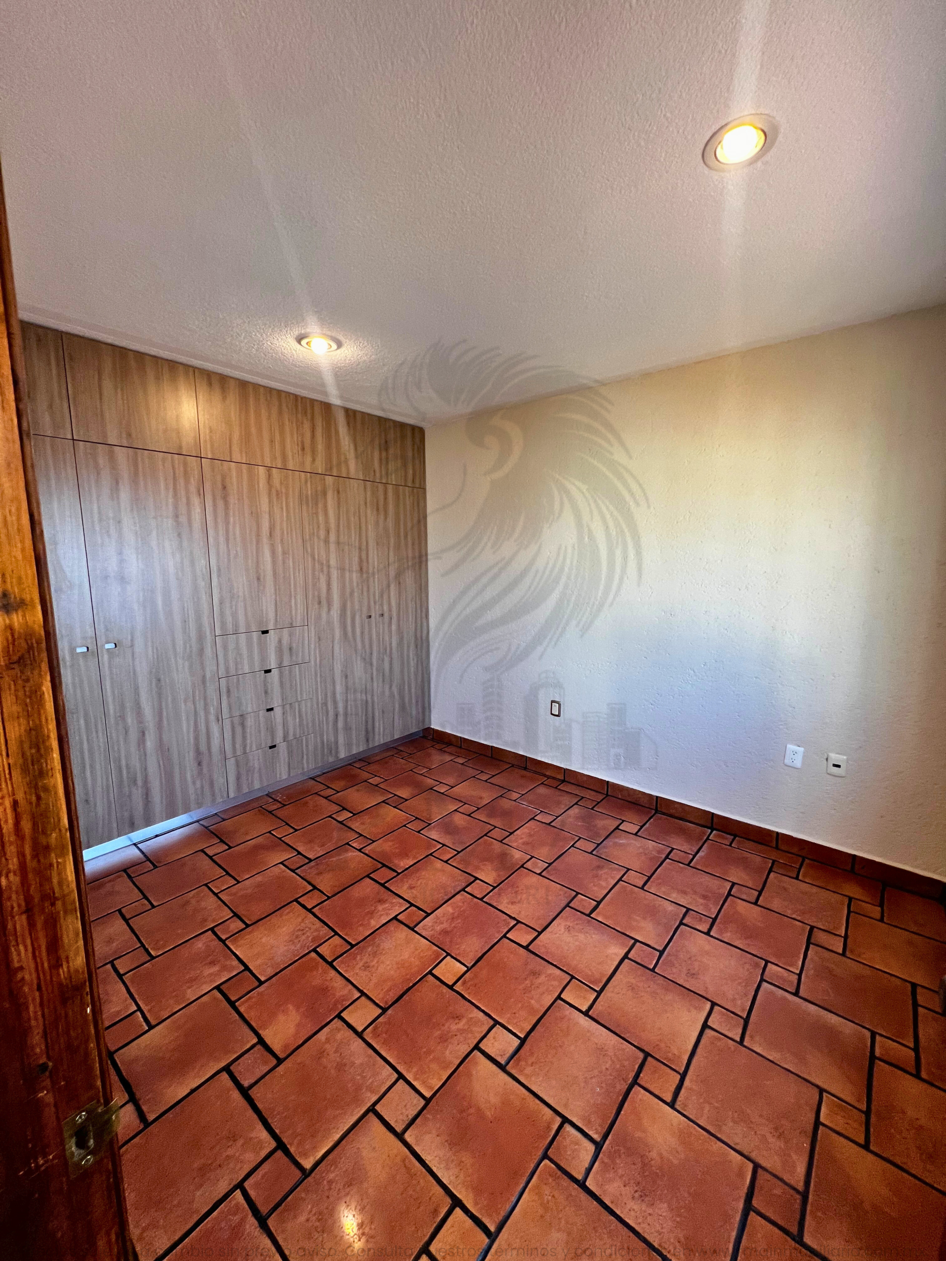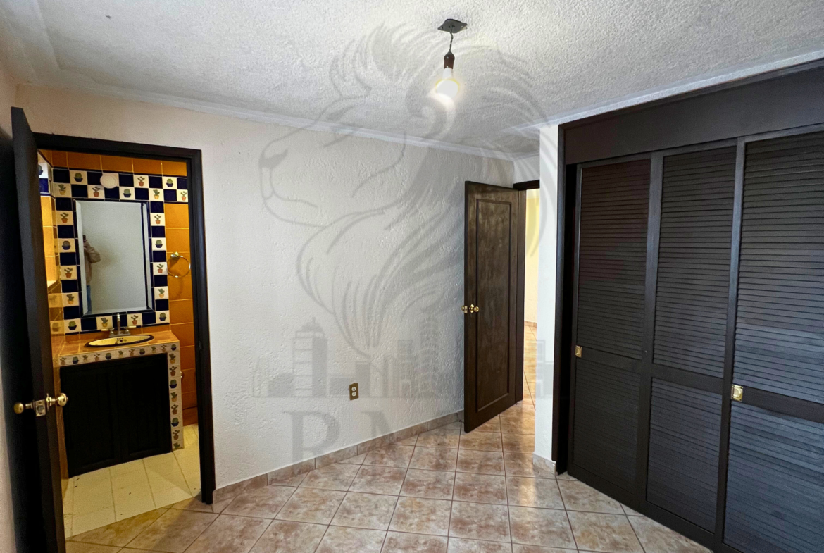 La planta alta ofrece una pequeña sala de TV, espacio para estudio u oficina, recámara secundaria con clóset y baño completo, y una recámara principal con vestidor y baño completo con tina y regadera.