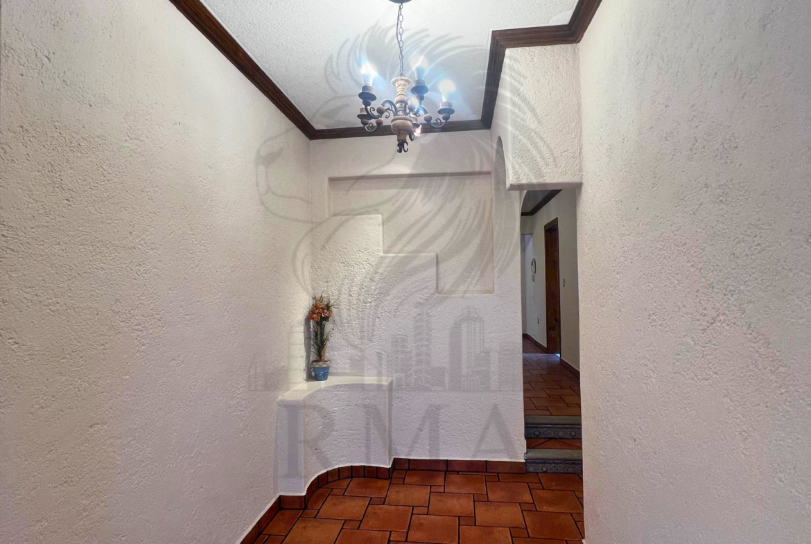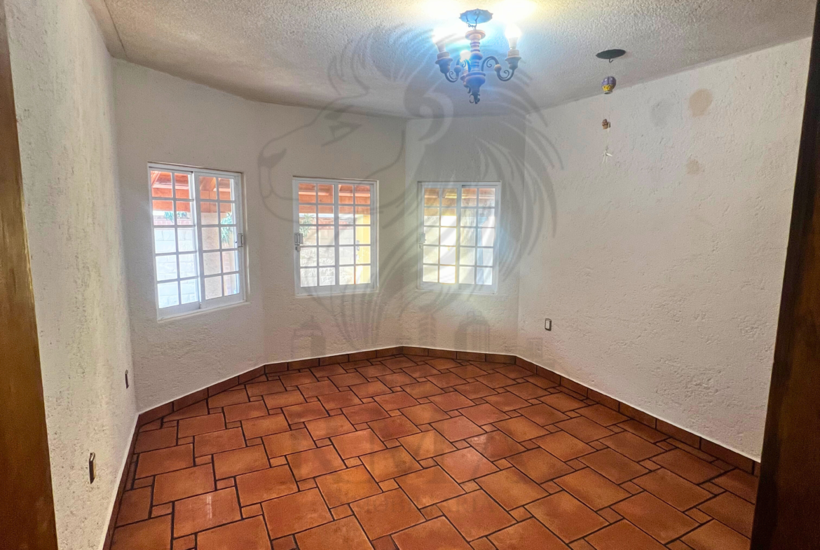 La casa cuenta con cochera para hasta 5 autos, una terraza techada con cocina y medio baño perfecta para eventos sociales, así como un patio amplio con opción para construir alberca.