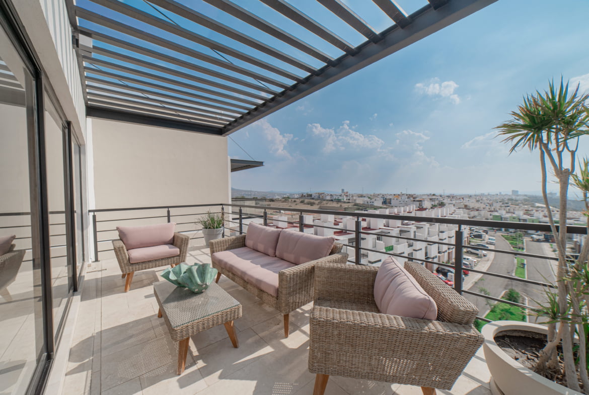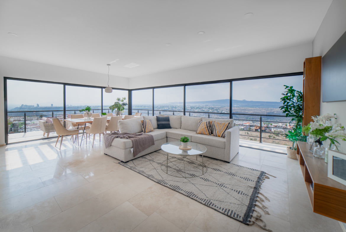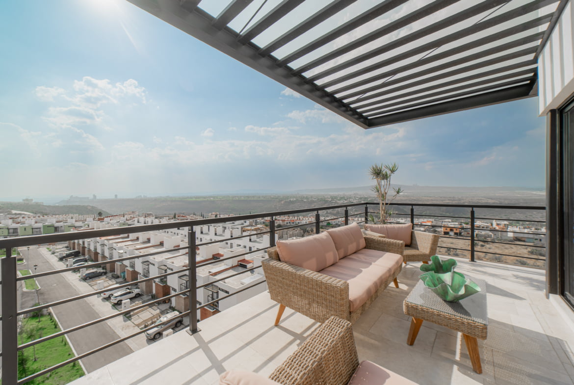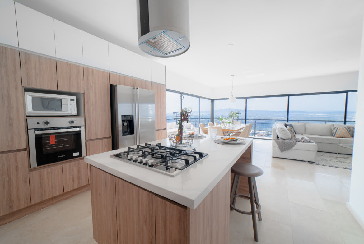 Su cocina abierta con una elegante isla despierta tus habilidades culinarias, mientras disfrutas de las vistas panorámicas desde su doble terraza.