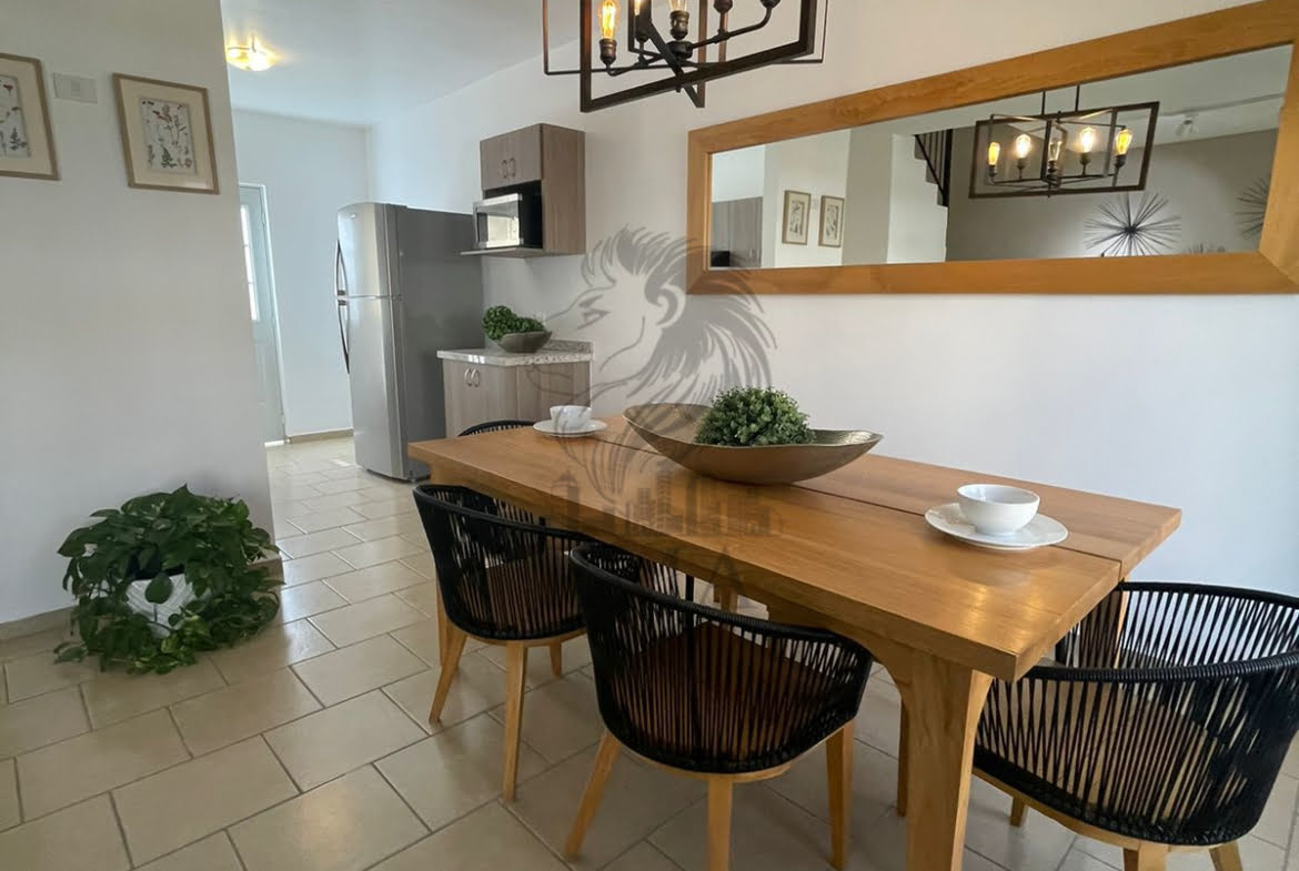 3 recamaras, Sala, comedor y cocina, 2.5 baños, Sala de tv, Cochera 2 autos, Privada con alberca climatizada con panel solar, Palapa.