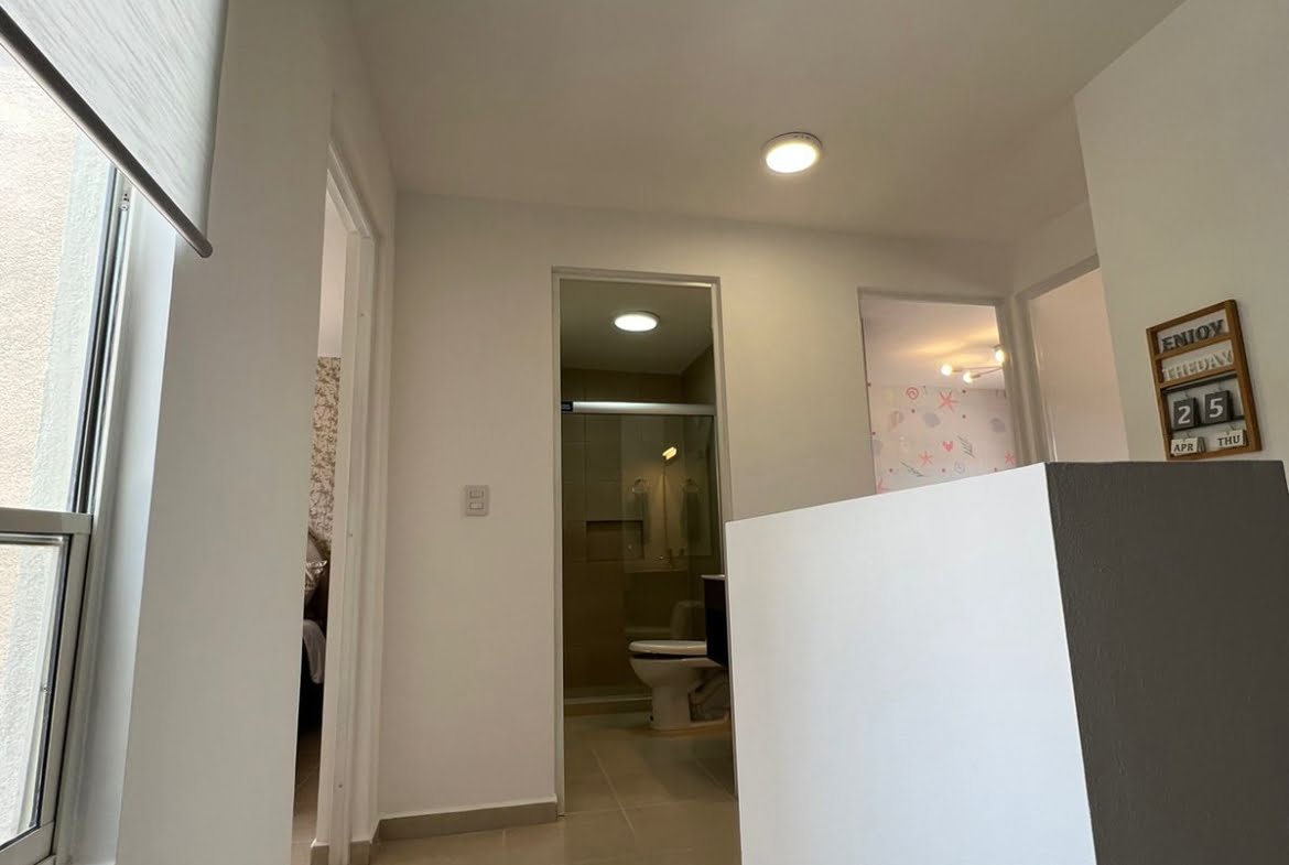 En la planta alta, se encuentran 2 recámaras secundarias, un baño completo y la amplia recámara principal.